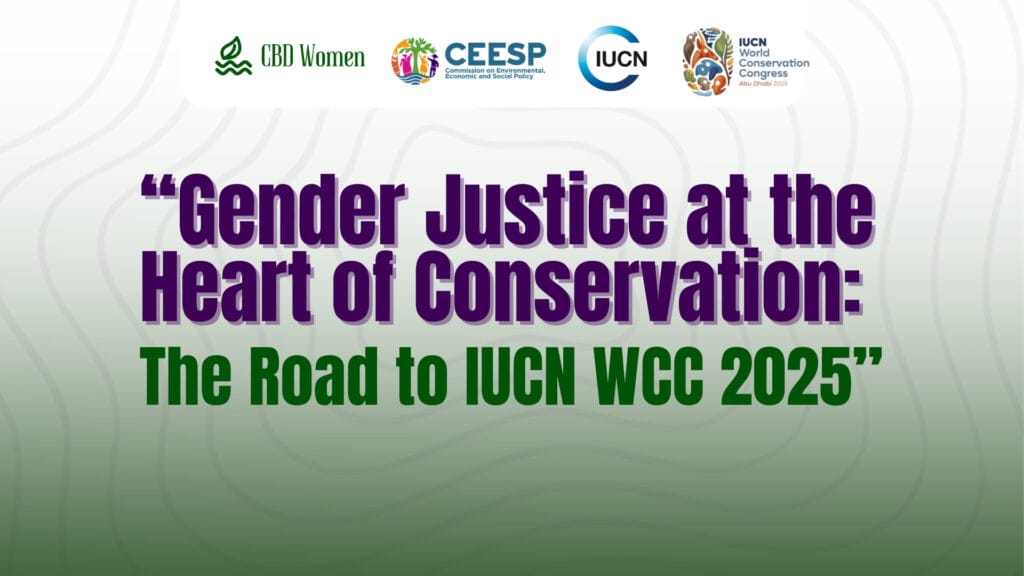 On September 17, 2025, the CBD Women’s Caucus, IUCN Human Rights and Conservation Team, and IUCN CEESP co-hosted the webinar “Gender Justice at the Heart of Conservation: The Road to IUCN WCC 2025.” The session brought together conservation professionals, women leaders, Indigenous organizations, and youth advocates to call for gender justice at the core of IUCN’s new Programme of Work (2026–2029), set for adoption at the upcoming World Conservation Congress—the world’s largest environmental decision-making forum.