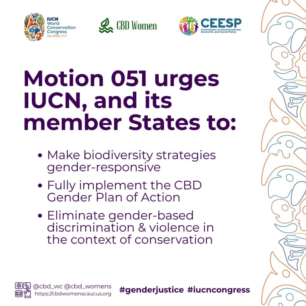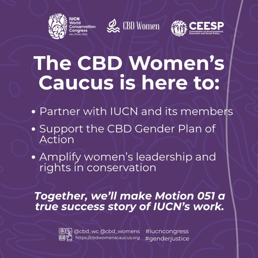 As the CBD Women’s Caucus, we are proud to stand alongside IUCN, governments and civil society to: