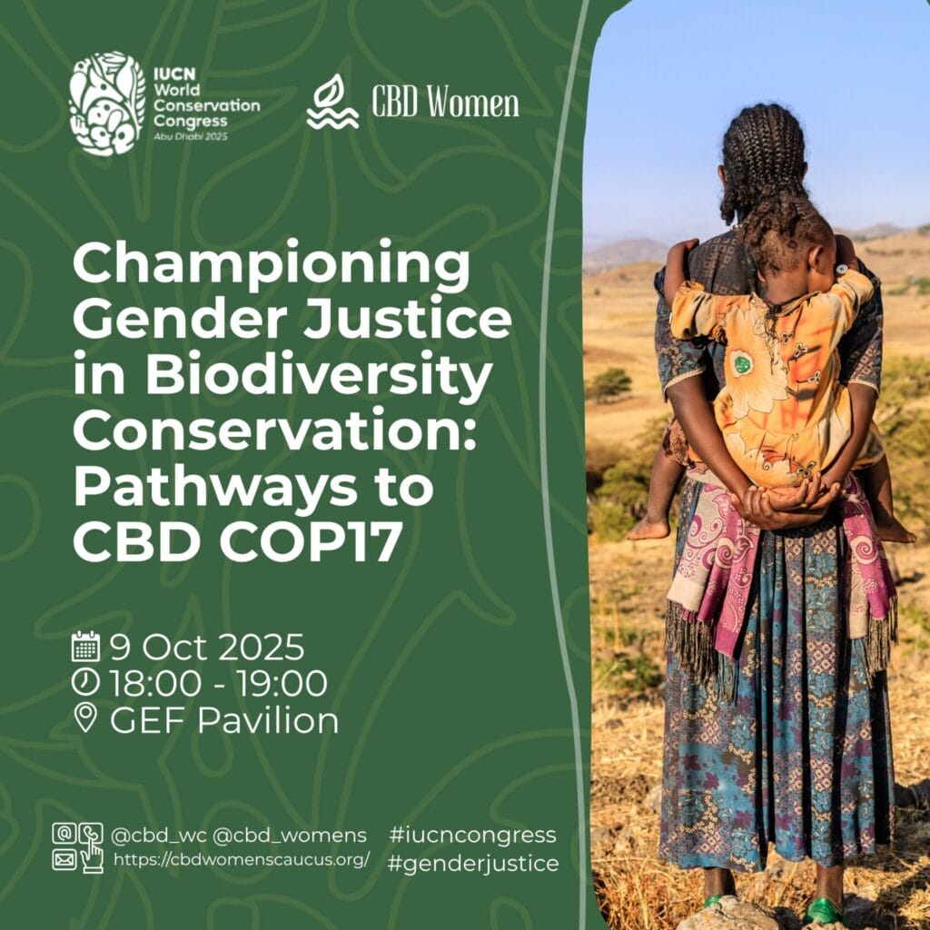 On September 17, 2025, the CBD Women’s Caucus, IUCN Human Rights and Conservation Team, and IUCN CEESP co-hosted the webinar “Gender Justice at the Heart of Conservation: The Road to IUCN WCC 2025.” The session brought together conservation professionals, women leaders, Indigenous organizations, and youth advocates to call for gender justice at the core of IUCN’s new Programme of Work (2026–2029), set for adoption at the upcoming World Conservation Congress—the world’s largest environmental decision-making forum.