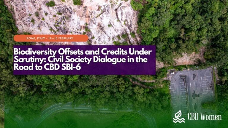 News CBDCross constituencyGender Plans Cross-learning session: “Gender Action Plans in practice: National implementation for biodiversity and climate” GEFIWD GEF’s International Women’s Day Learning Session DataGender DataLearning Call for expressions of interest: peer learning series on gender and biodiversity data DataGender DataMonitoring Making Space for Women’s Leadership in Biodiversity Data and Evidence CSW From CSW Commitments to COP17: Advancing Gender Equality for Biodiversity Action CSW Breaking the Silence: Advancing Justice for Women Environmental Rights Defenders Ensuring Women’s Voices Shape the Global Biodiversity Review: CBD Women Caucus Engagement at the AHSTAG Meeting in Montreal What is the EBSAs Informal Advisory Group (IAG)? AHTEGOnline forumSynBio CBD Women’s Caucus at the CBD online Forum on Synthetic biology impacts Expert meeting on the draft global guidance on the sustainable management of wildlife applicable to multiple species and practices Biodiversity Offsets and Credits Under Scrutiny: Civil Society Dialogue in the Road to CBD SBI-6 IPBES IPBES-12: What the Business & Biodiversity Assessment Means for Gender Justice Check more...