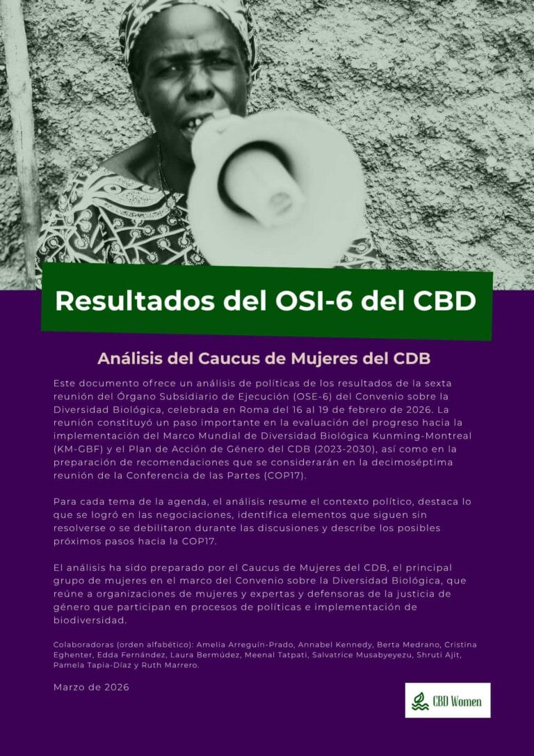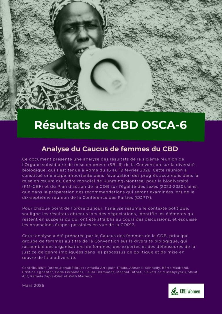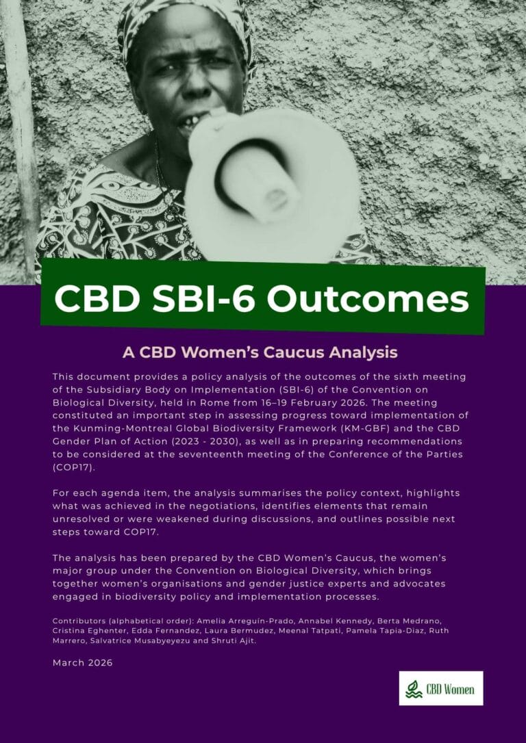 Read, share and use this analysis to advance gender justice, human rights and the leadership of women in biodiversity policy and implementation.