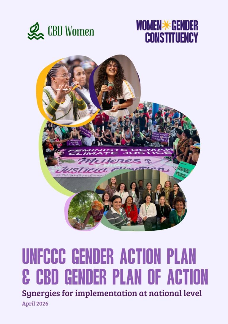 This briefing, developed by the CBD Women’s Caucus and the UNFCCC Women and Gender Constituency, explores synergies between the CBD Gender Plan of Action (2023–2030) and the UNFCCC Belem Gender Action Plan (2026-2034) to support more coherent, coordinated, and gender-responsive implementation at national and local levels.